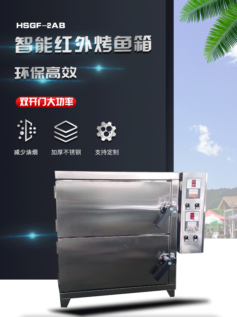 雙層雙盤烤魚箱,適合一天出魚量在四五十條魚左右的烤魚店。我公司是河南省生產(chǎn)智能紅外烤魚箱的廠家,該烤魚箱是國家專利審核過的產(chǎn)品,請大家放心訂購。此款烤魚箱不僅銷往本省區(qū)域,而且遠(yuǎn)銷上海 北京 廣州 深圳 天津 重慶 蘇州 武漢 成都 杭州 南京 青島 長沙 無錫 佛山 寧波 大連 鄭州 沈陽 煙臺 濟南 東莞 泉州 南通 唐山 鎮(zhèn)江 滄州 西安 福州 長春 合肥 濰坊 徐州 常州 溫州 紹興 濟寧 淄博 鹽城 揚州 昆明 南昌 臨沂 東營 臺州 泰州 嘉興 洛陽 廈門 金華 南寧 襄陽 宜昌 邯鄲 泰安 榆林 惠州 威海 中山 保定 吉林 南陽 德州 岳陽 太原 聊城 常德 漳州 貴陽 淮安 衡陽 茂名 濱州 蕪湖 湛江 菏澤 柳州 株洲 許昌 江門 咸陽 周口 廊坊 湖州 宿遷等城市。恒晟牌烤魚箱典型客戶:小城漁家,魚貴人,魚酷,魚派,食客沸騰,巫山烤魚,烤功夫,諸葛烤魚,三國烤魚,萬州烤魚,重慶烤魚,七公江湖燒烤等。