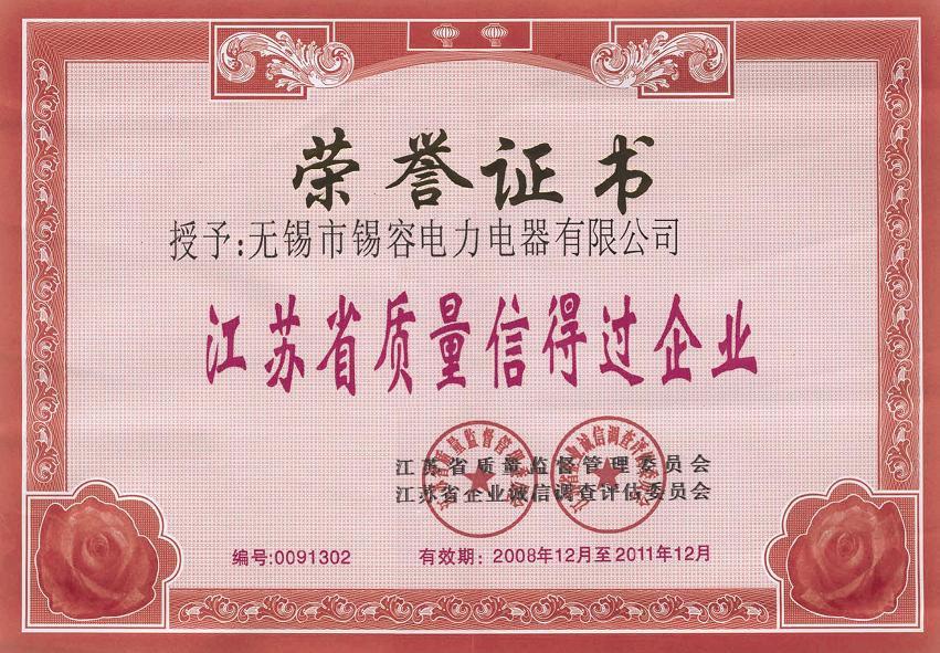 Wuxi Xirong Electric Appliance Co., Ltd. was awarded by Wuxi Technical Supervision and Information Research Institute in 2008 as a member unit of China Wuxi Quality Network