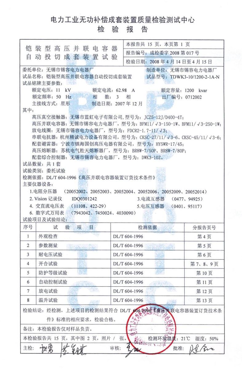 Test report release time:2020-07-20 04:06:13source:Wuxi Xirong Electric Appliance Co., Ltd.Click:1685