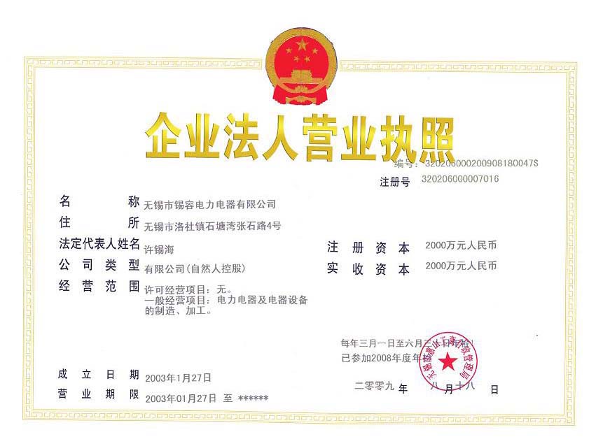 Business license release time:2020-07-20 04:35:57source:Wuxi Xirong Electric Appliance Co., Ltd.Click:1836